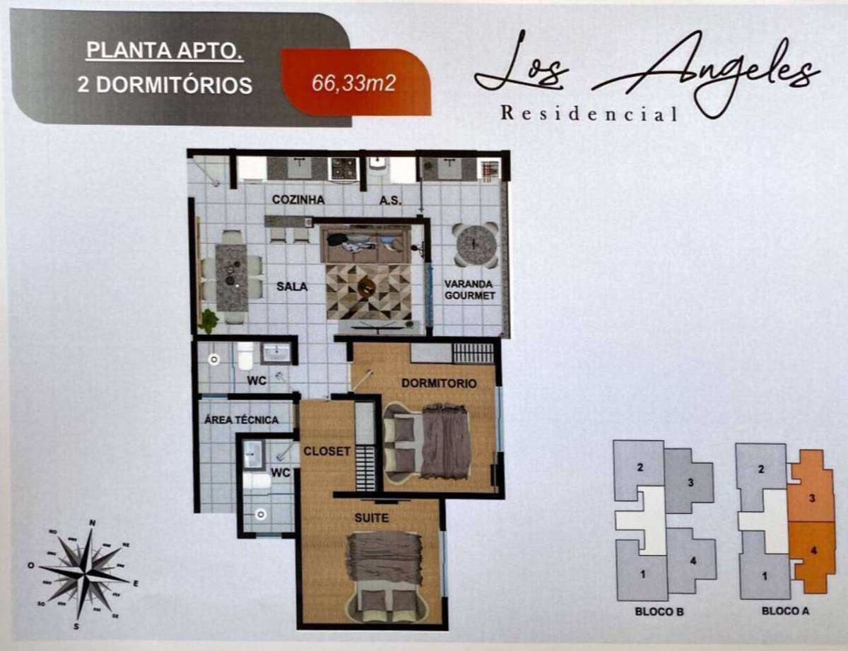 Apartamento com 59,78 m² distribuídos em: