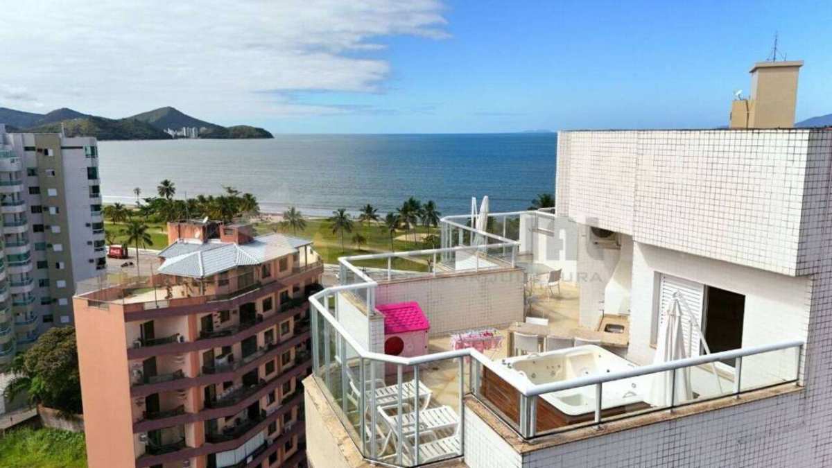 Cobertura duplex disponível para venda de frente para o mar, localizado no bairro Indaiá em Caraguatatuba, litoral norte de São Paulo.